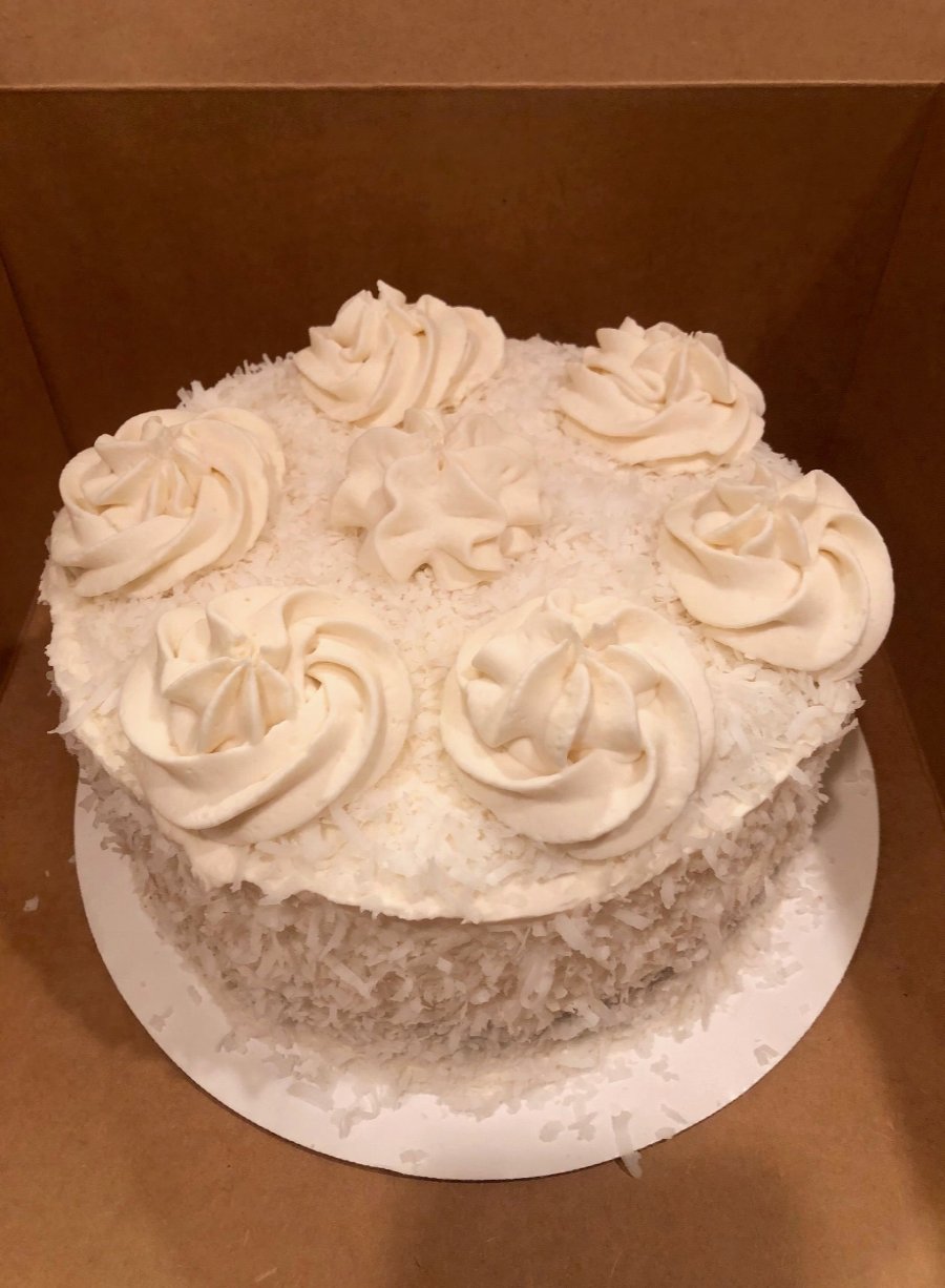 Layers of moist coconut cake with vanilla buttercream and so delicious.